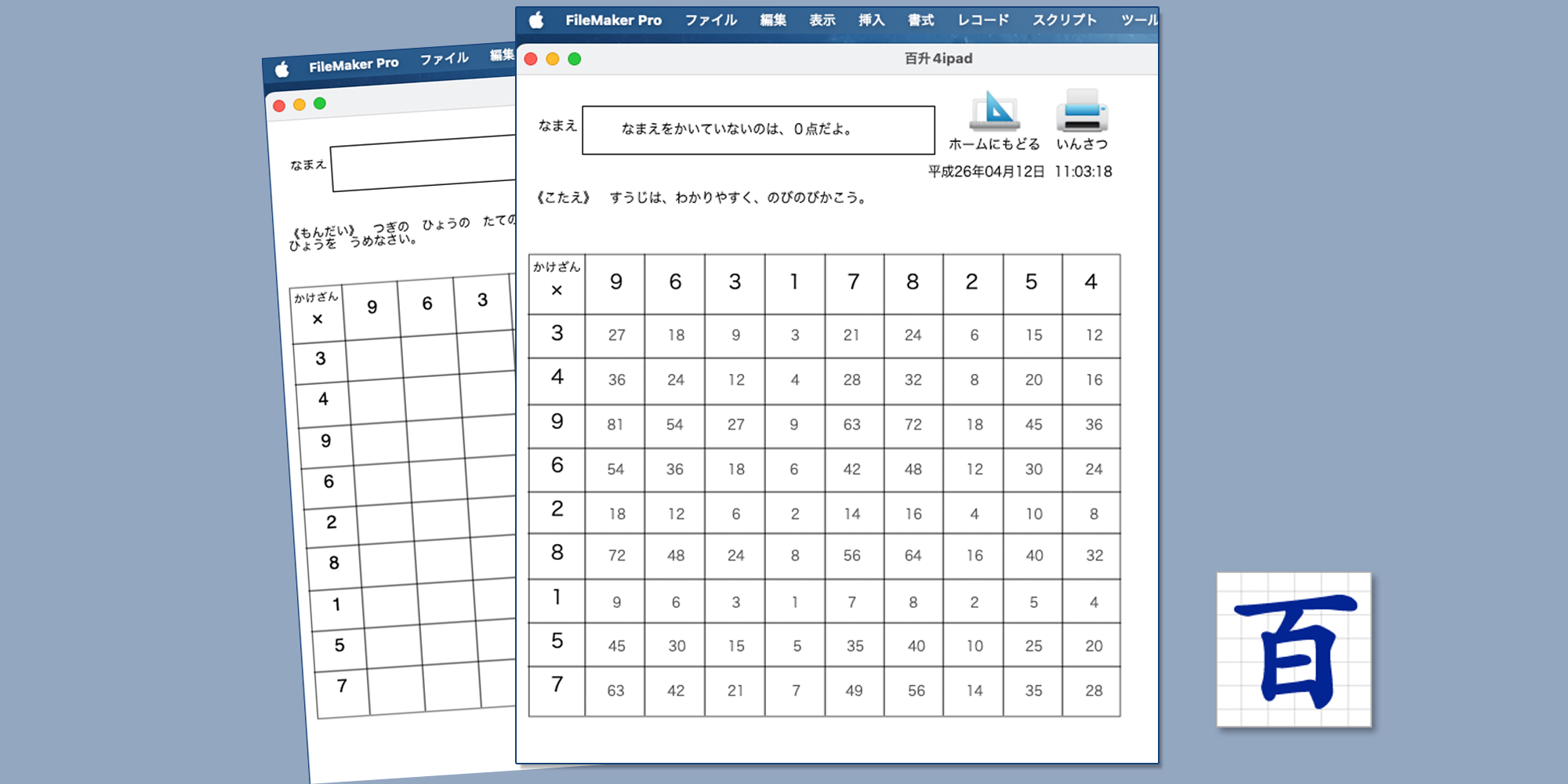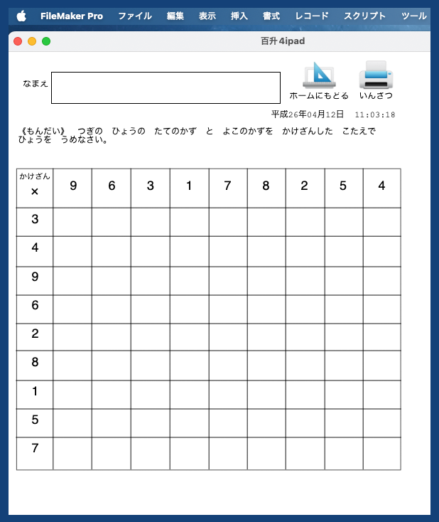 On FileMaker百ますかけ算の紹介