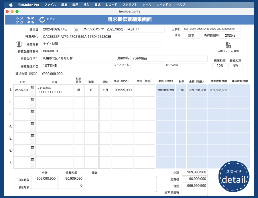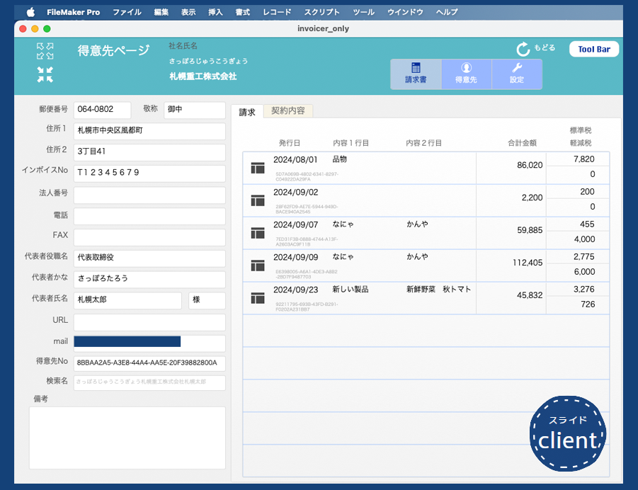 FileMaker/Pro/server/Go 請求書発行管理カスタム App