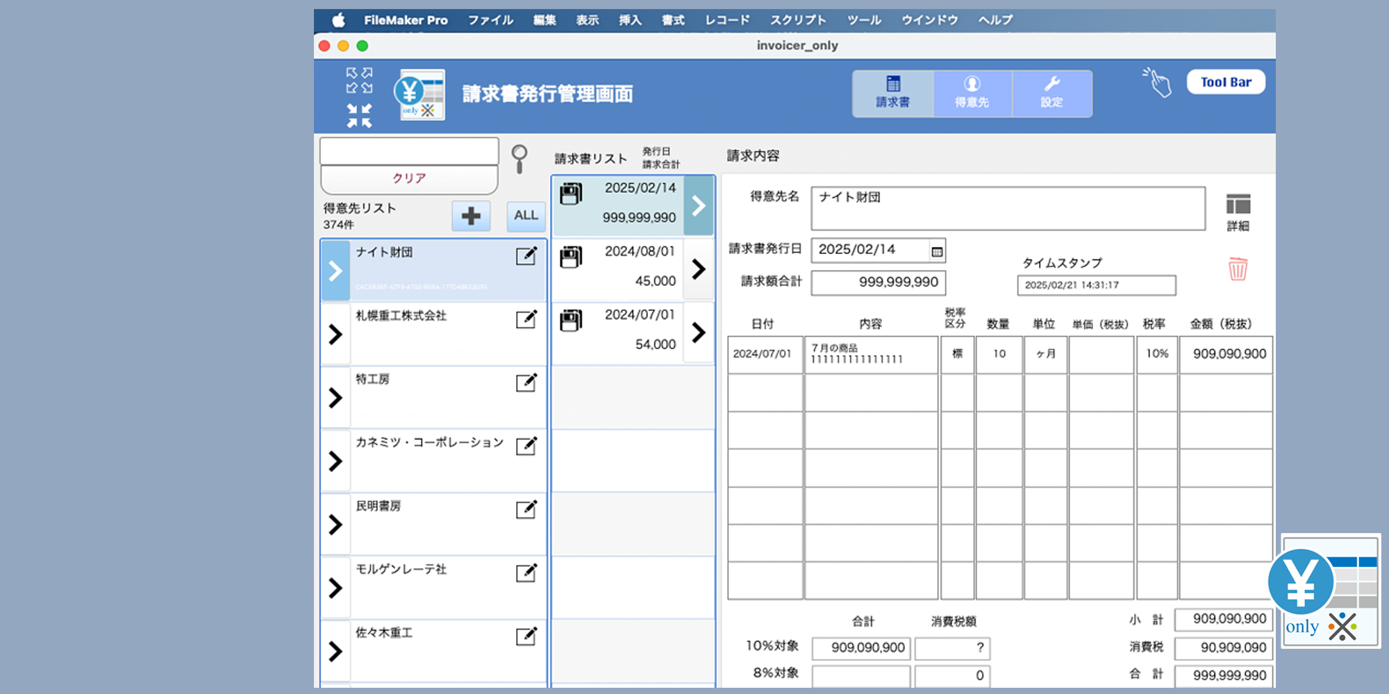 On FileMaker「インボイサーオンリー」の紹介